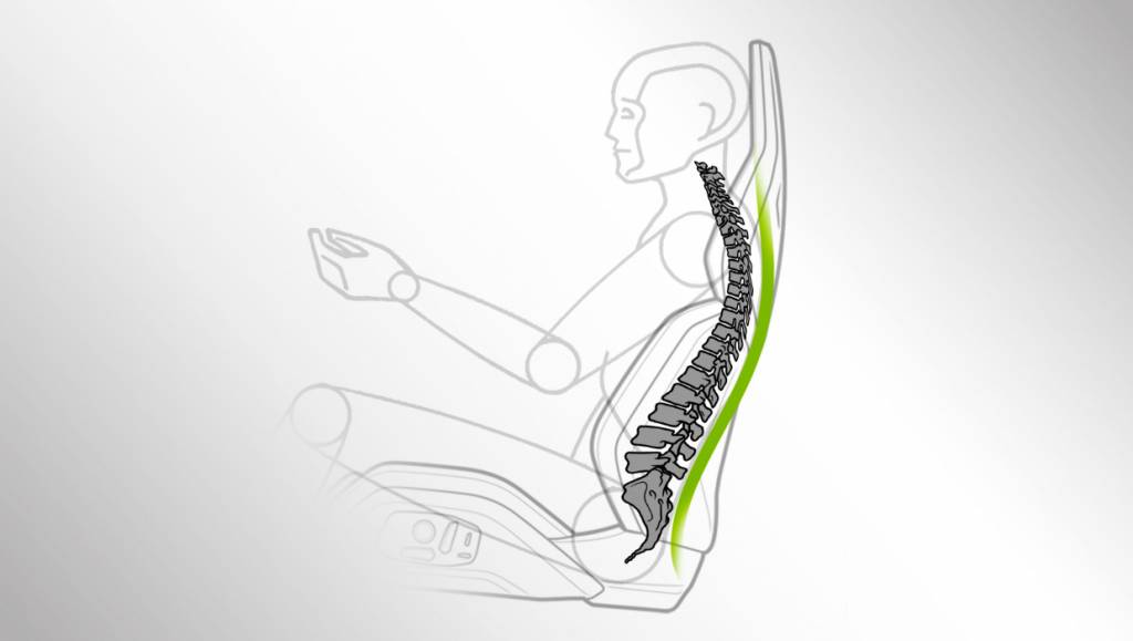 RECARO geht von einer sogenannten Idealkontur aus, die das Doppel-S der Wirbelsäule in der Lehne abbildet. Besonders wichtig: die im Bereich des oberen Beckenkamms nach vorne gewölbte Lehne zur Abstützung des aufgerichteten Beckens. Je nach Anwendung ist auch eine seitliche Führung des Rückens von Vorteil, weil dadurch die notwendige Stützarbeit der Muskulatur weiter verringert wird.
